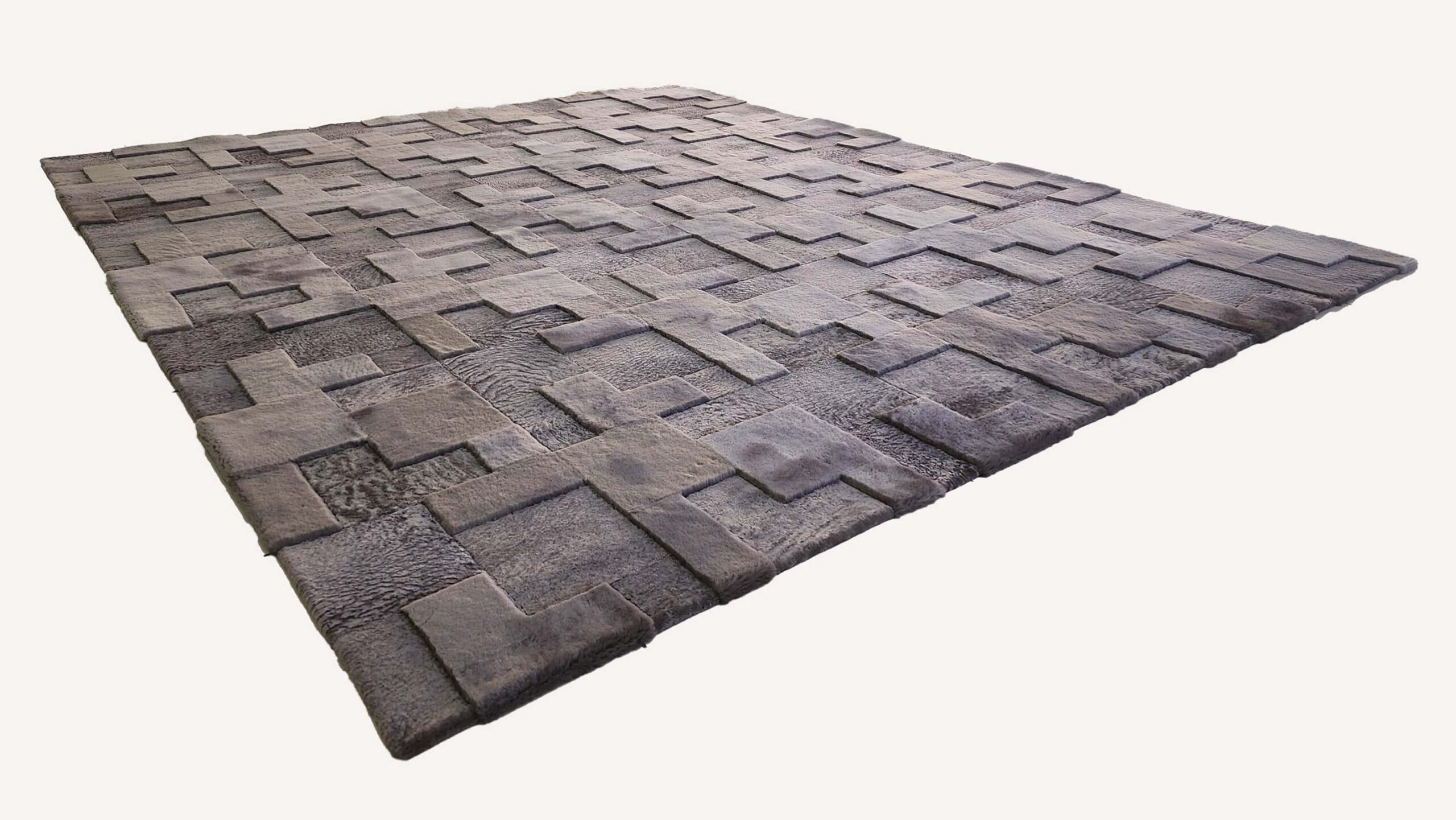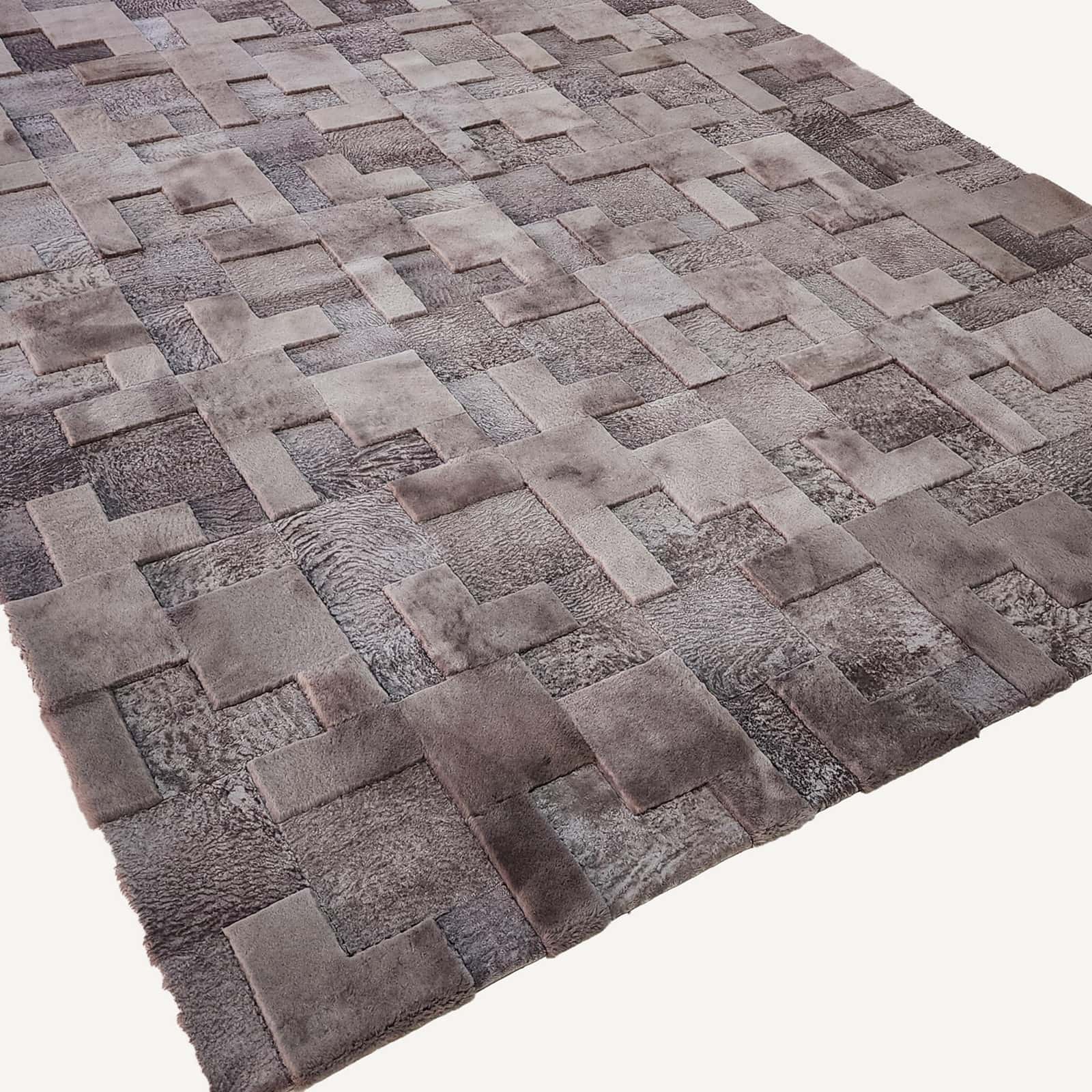 Made from a harmonious blend of rectangle-shaped Muton and Astrakhan pelt pieces, the Tetromino pattern creates a striking visual effect that’s sure to impress. With a variety of standard colors and custom color options to choose from, Tetromino will transform any space into a cozy and sophisticated retreat.