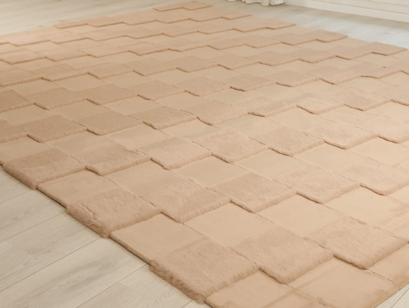 A custom sheepskin rug aesthetic is often defined by its structural depth, and the Faux Fur Step achieves this through advanced synthetic fiber engineering. At Regal Rugs, we construct this model by alternating between low-pile and high-pile faux fur segments. This “step” effect creates a physical relief that is incredibly dense and soft to the touch. By using a grid-based assembly, we ensure that each square remains defined, providing a clean, architectural look that mimics the luxurious feel of high-grade natural pelts while offering a modern, uniform finish.