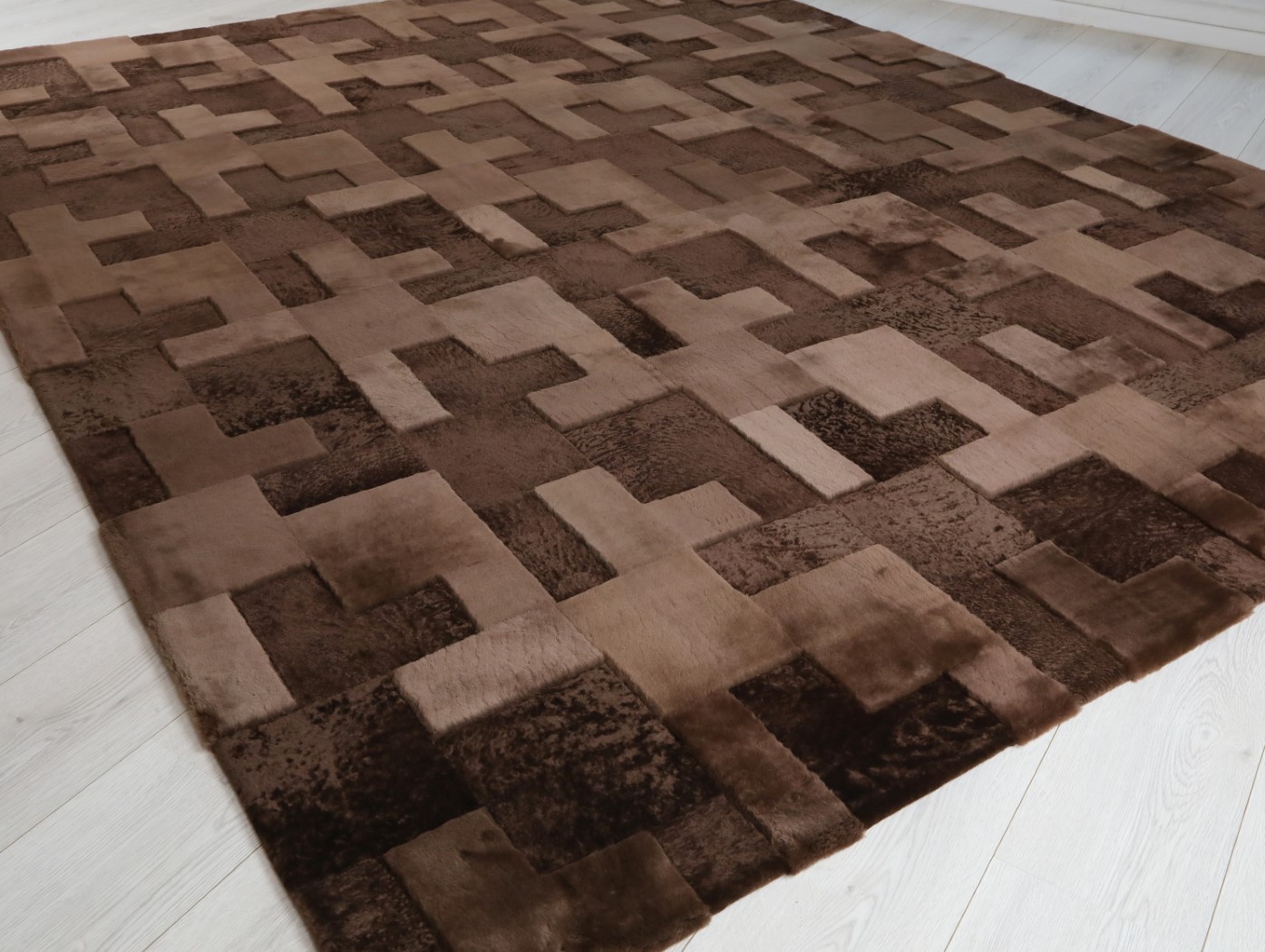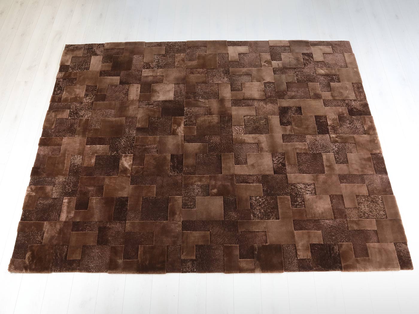 Made from a harmonious blend of rectangle-shaped Muton and Astrakhan pelt pieces, the Tetromino pattern creates a striking visual effect that’s sure to impress. With a variety of standard colors and custom color options to choose from, Tetromino will transform any space into a cozy and sophisticated retreat.
